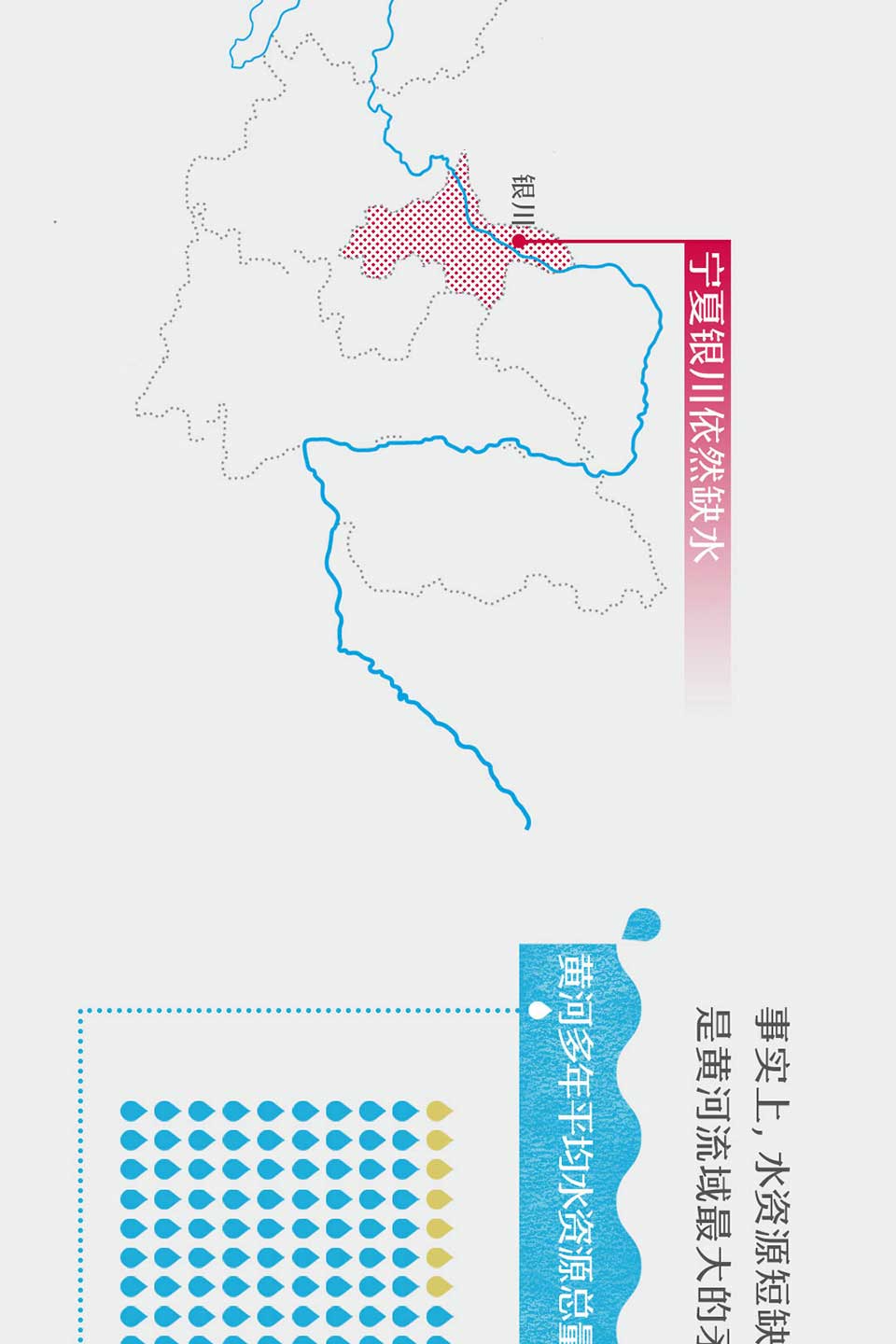 奔涌过高原、峡谷、沙漠、平原,黄河弯曲成拥抱大地的臂弯。人们投入怀抱,逐水而居。
